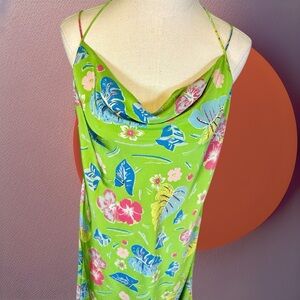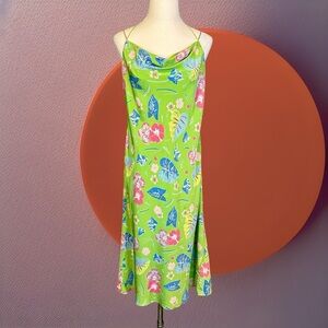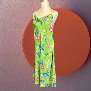 Lauren Ralph Lauren Vintage Y2K 100% Silk Bias Cut Tropical Beach Print Dress 12