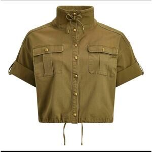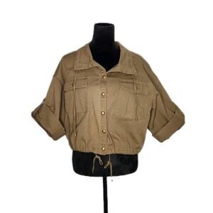 Lauren Ralph Lauren Vondra Cropped Boxy Utility Jacket Olive Twill Size 14