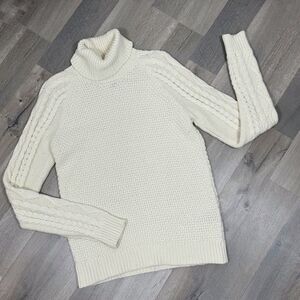 Lauren Ralph Lauren Waffle Cable Knit Turtleneck Sweater Cream Large Fisherman