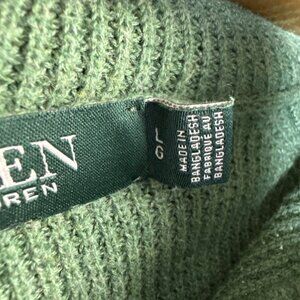 Lauren Ralph Lauren Waffle Knit Hoodie Women's L Green Label Sweater Pullover
