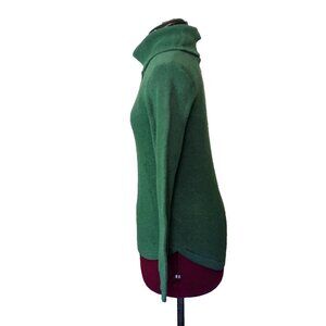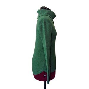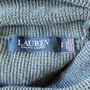 Lauren Ralph Lauren Waffle Knit Top Green Womens Size Small Cowl Neck Curved Hem