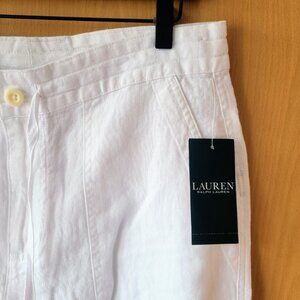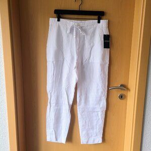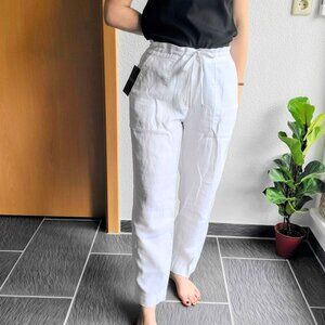Lauren Ralph Lauren White 100% Linen Drawstring Straight Leg Pants