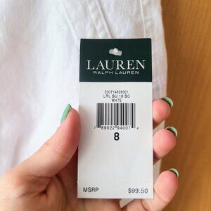 Lauren Ralph Lauren White 100% Linen Drawstring Straight Leg Pants Size 8