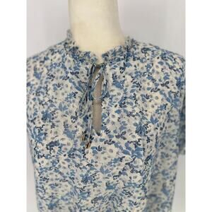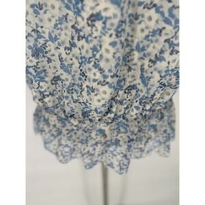 Lauren Ralph Lauren White Blue Floral Blouse Top Elastic Waist Cottagecore Large