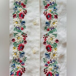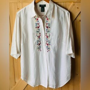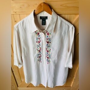 Lauren Ralph Lauren White Linen Blouse with flower embroidery Size Large