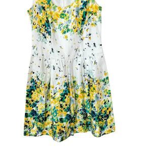 Lauren Ralph Lauren White Yellow Watercolor Floral Spring Midi Dress Size 4