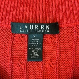 Lauren Ralph Lauren Wide Neck Cozy Red Cable Knit Sweater Silky Cotton Blend XL