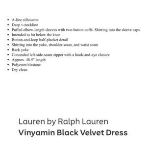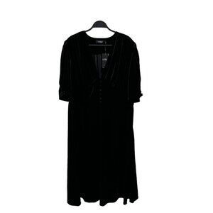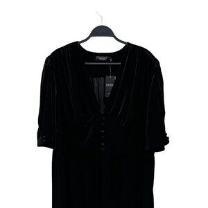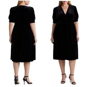 Lauren Ralph Lauren Woman Plus 3X Black Velvet V Neck Midi Half Sleeve Dress NWT