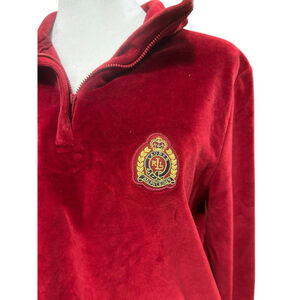 Lauren Ralph Lauren Woman Size Petite Small Velour 1/3 Zip Top Large Crest