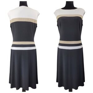 Gently used Lauren Ralph Lauren Woman’s Color-block midi dress black white tan size 14