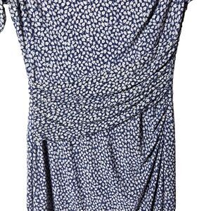 Lauren Ralph Lauren Woman's Short Sleeve Ruched Navy and Beige Dress Size 2