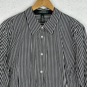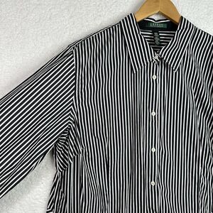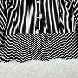 Lauren Ralph Lauren Women 20W Blouse Black White Striped Peplum Button Up Cotton