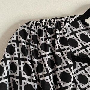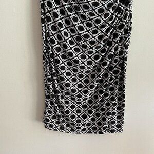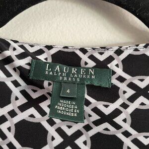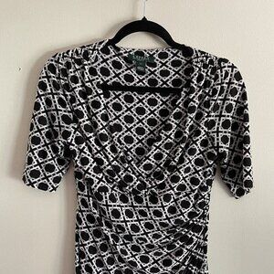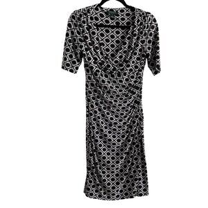 Lauren Ralph Lauren Women 4 Black/White Geometric Print V Neck S/S Shirred Dress