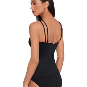 Lauren Ralph Lauren Women Black Double-Strap Twist-Front Tankini Top Size US 14
