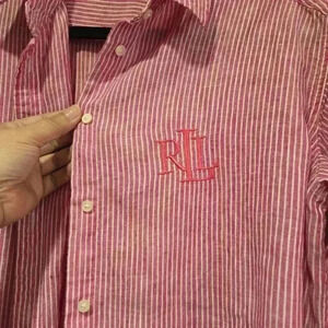 Lauren Ralph Lauren Women Blouse Embroidered 100% Linen Pink Stripe Size S/P