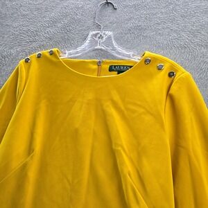 Lauren Ralph Lauren Women Dress 12 Yellow Sheath Shoulder Button Logo Detail NWT