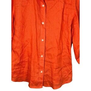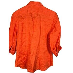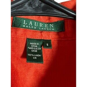 Lauren Ralph Lauren Women Linen Puff-Sleeve Blouse Sz Small Sunset Orange Casual