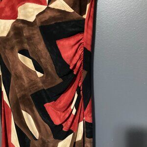 Lauren Ralph Lauren Women M Dress Red Black Body Con Stretch V Neck Sleeveless