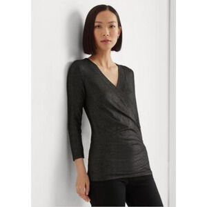 Lauren Ralph Lauren Women Metallic Jersey Surplice Top Black Size S