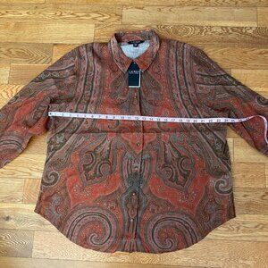 Lauren Ralph Lauren Women Orange Paisley Challis Shirt Long Sleeve Size XXL NWT