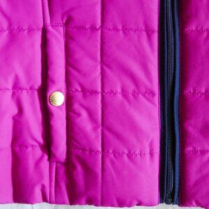 Details: Full front zipper, easy to pull. Fully lined. Two front slit pockets over the hips with one-snap closures. Full-zipper slit pocket over left chest. Contrast zipper and collar detail. Contrast lining detail. Gold tone hardware. Mandarin collar.