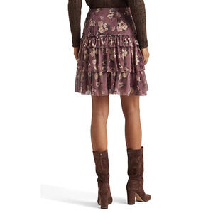 Lauren Ralph Lauren Women Ruffled Floral Skirt Purple Multi Size 2