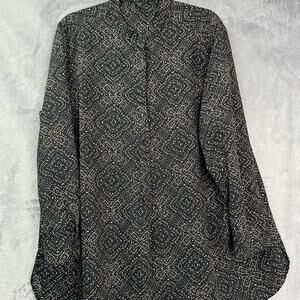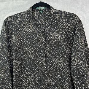 Lauren Ralph Lauren Women Shirt Button Up Long Sleeve Black Ivory Print Sz 2X