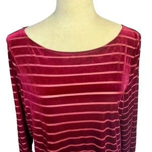 Lauren Ralph Lauren Women Top Sz XL Velvet Burgundy Semi Sheer Stripes Feminine