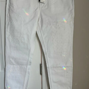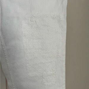 Lauren Ralph Lauren Women White Eyelet-Patchwork Relaxed Tapered Jean Size 8p