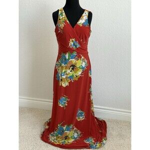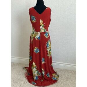 Lauren Ralph Lauren Womens 10 Red Jersey Sleeveless Maxi Dress Black Label Soft Whimsical Romantic