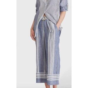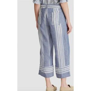 Lauren Ralph Lauren Womens 100% Linen Striped Wide Leg Pants Size 8 Blue SP NWT.