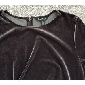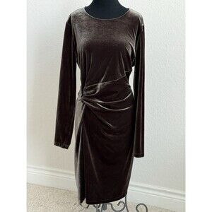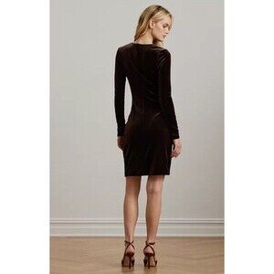 Lauren Ralph Lauren Women's 16 Twist-Front Velvet Long-Sleeve Dress Brown Soft Minimalist Wedding Stretchy Beautiful Sheen
