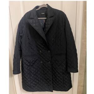 Lauren Ralph Lauren Women's 1X Double-Breasted Diamond Quilted Navy Barn Coat