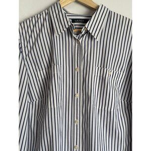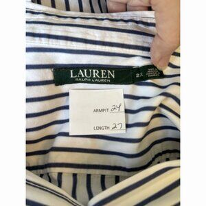 Lauren Ralph Lauren Women’s 2X Button Up Stripe Top White Blue Nautical Office