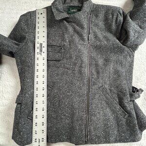 Lauren Ralph Lauren Womens Asymmetric Zip Tweed Jacket Size 12 Gray Pockets
