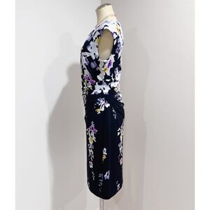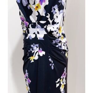Lauren Ralph Lauren Black Combo Floral Print Ruched Jersey Dress Size 14