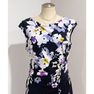 Lauren Ralph Lauren Women's Black Combo Floral Print Ruched Jersey Dress Size 14