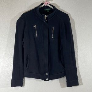 Lauren Ralph Lauren Women's Black Cotton Front Zip Sweater Jacket Size Medium