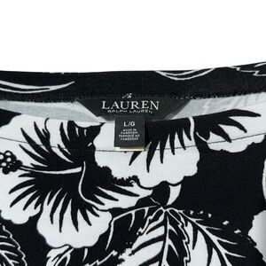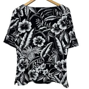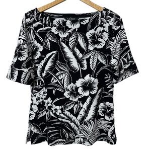 Lauren Ralph Lauren Womens Black Label Leaf Print Knit Top Size L Boat Neck