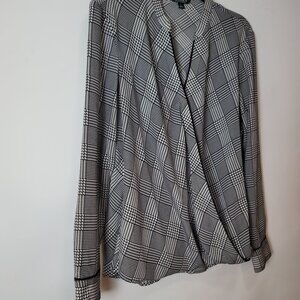 Lauren Ralph Lauren Womens Black & White Houndstooth Wrap Blouse Long Sleeve Siz