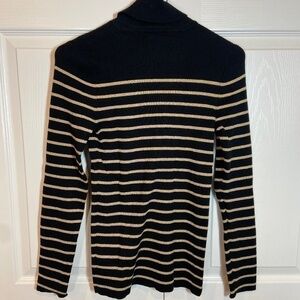 Lauren Ralph Lauren Women's Black and Gold Ribbed Turtleneck Sweater Size M