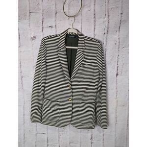 Lauren Ralph Lauren Womens Blazer Green White Stripe Cotton with Pockets and Brass Buttons Sz XL