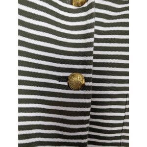 Lauren Ralph Lauren Womens Blazer Green White Stripe Cotton Brass Buttons Sz XL