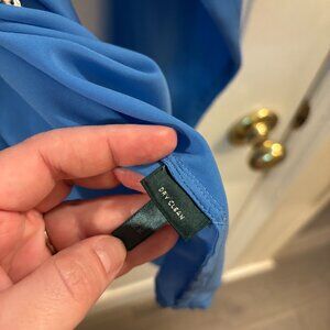 The Lauren Ralph Lauren Women's Blue Button-Down Blouse Shirt in XS is a classic and versatile top perfect for various occasions such as travel, casual outings, or business events. Made from lightweight polyester fabric, this collared shirt features a button closure and long sleeves, making it comfortable and easy to wear in any season. The solid blue color adds a pop of style, while the regular fit ensures a flattering silhouette. This blouse from a reputable brand like Lauren Ralph Lauren is a timeless piece that can be dressed up or down effortlessly.
