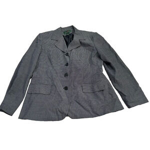 Lauren Ralph Lauren Women's Blue Lapel Notch Herringbone Blazer Jacket Size 12