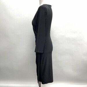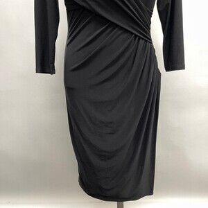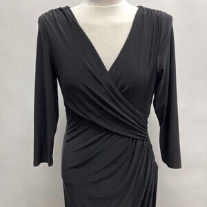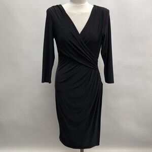 Lauren Ralph Lauren Women's Bodycon Dress 10 Black V-Neck Faux Wrap