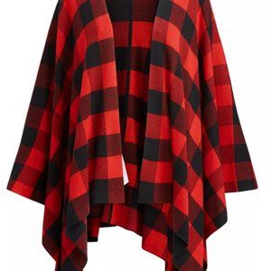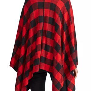 Lauren Ralph Lauren Women's Buffalo Plaid Layering Poncho Sweater Red/Black S/M
