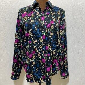 Lauren Ralph Lauren Womens Button Shirt Floral Cotton Non Iron Medium Black Pink