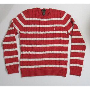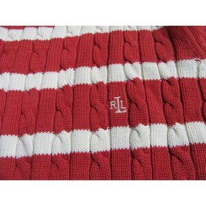 Lauren Ralph Lauren Women’s Cable Knit Sweater Red Ecru Striped Large NWT NEW