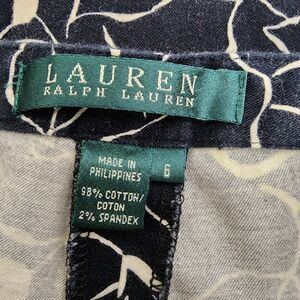 Lauren Ralph Lauren Womens Capri Pants Size 6 Black White Floral Crop Side Zip